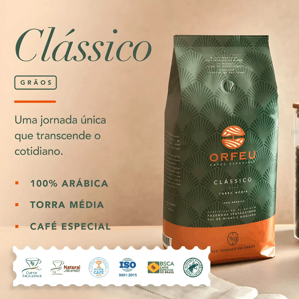 Café Especial Orfeu Clássico Torrado em Grãos Pacote 1kg